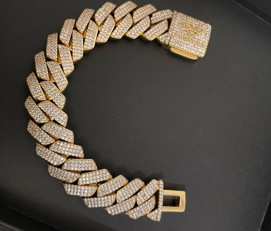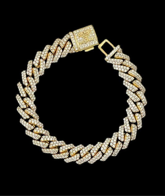 12mm Gold Cuban Link CZ bracelet (heavy)