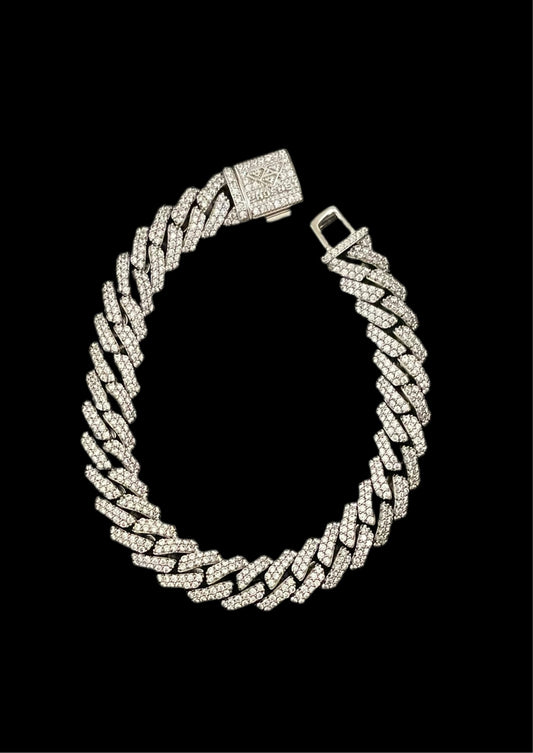 12mm White Gold Cuban Link CZ bracelet (heavy)