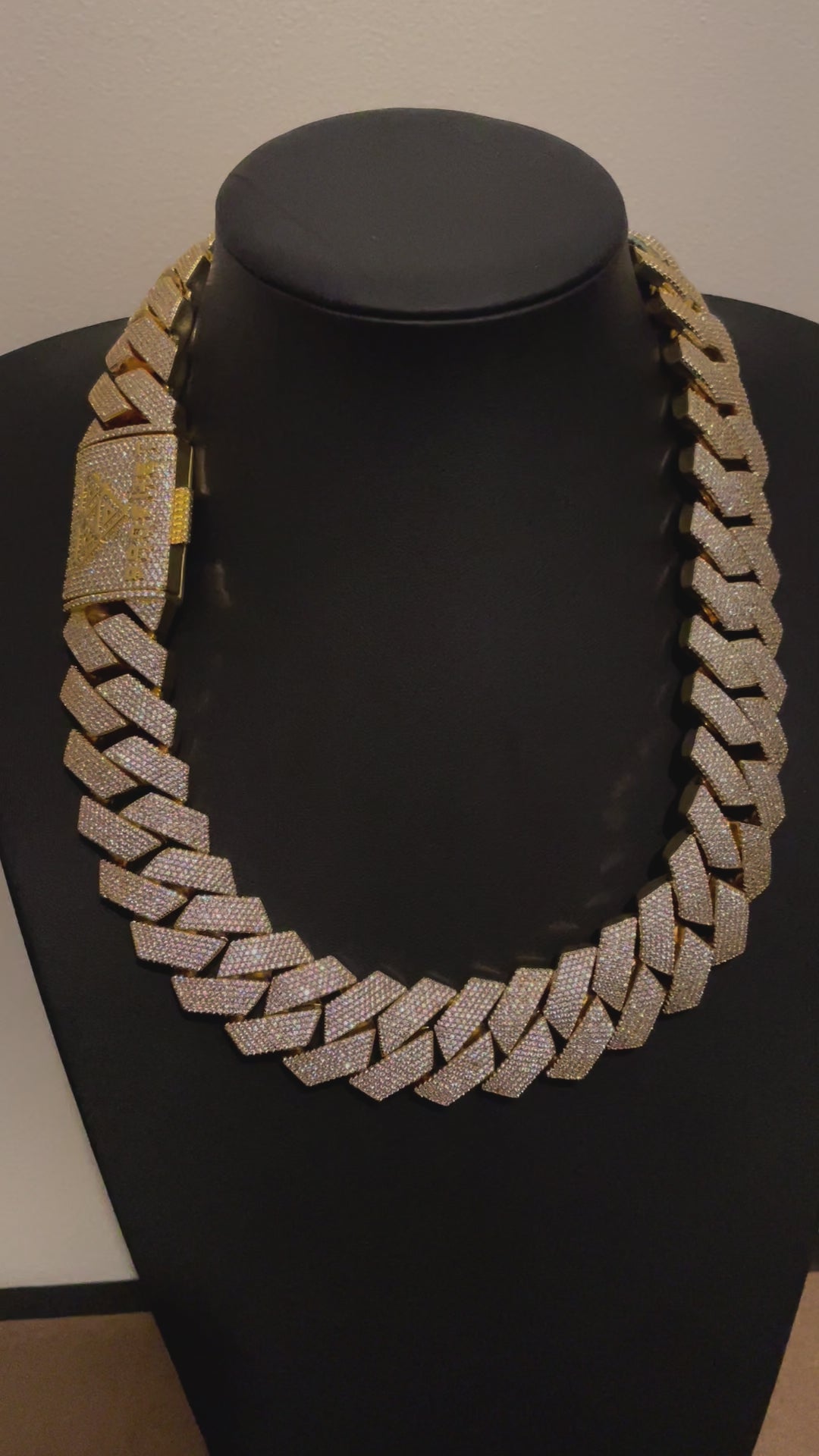 Upgrade your style game with our 25mm Gold Cuban Link CZ necklace - the perfect blend of flash, confidence and luxury. This hip hop-inspired design is 18K gold plated and will make a statement wherever you go.